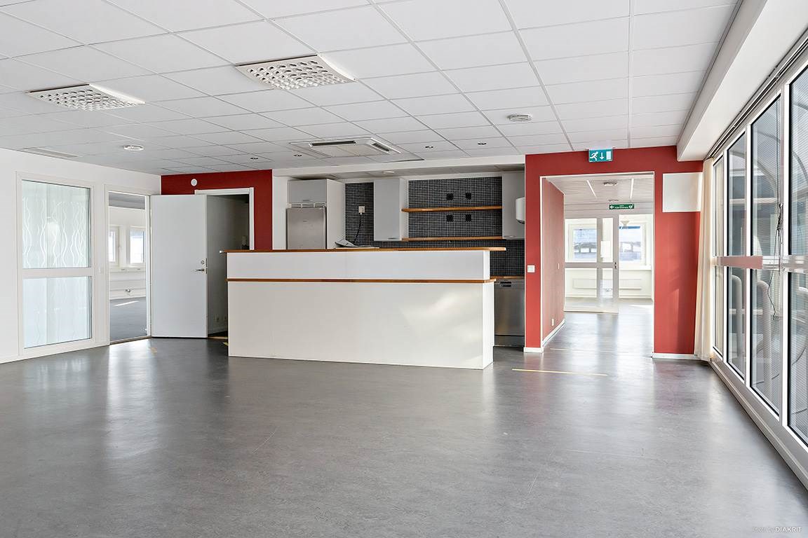 Ljus och trevlig kontorslokal om totalt ca 956 kvm med möjlighet att även förhyra lager om max ca 374 kvm + inhägnad mark om ca 800 kvm. Ljus och trevlig kontorslokal om totalt ca 956 kvm. I dagsläget består 3/4 av kontoret av kontorsrum, resterande del öppen planlösning/gemensamma ytor. Planlösning och skick kan anpassas i samråd med tillträdande hyresgäst.