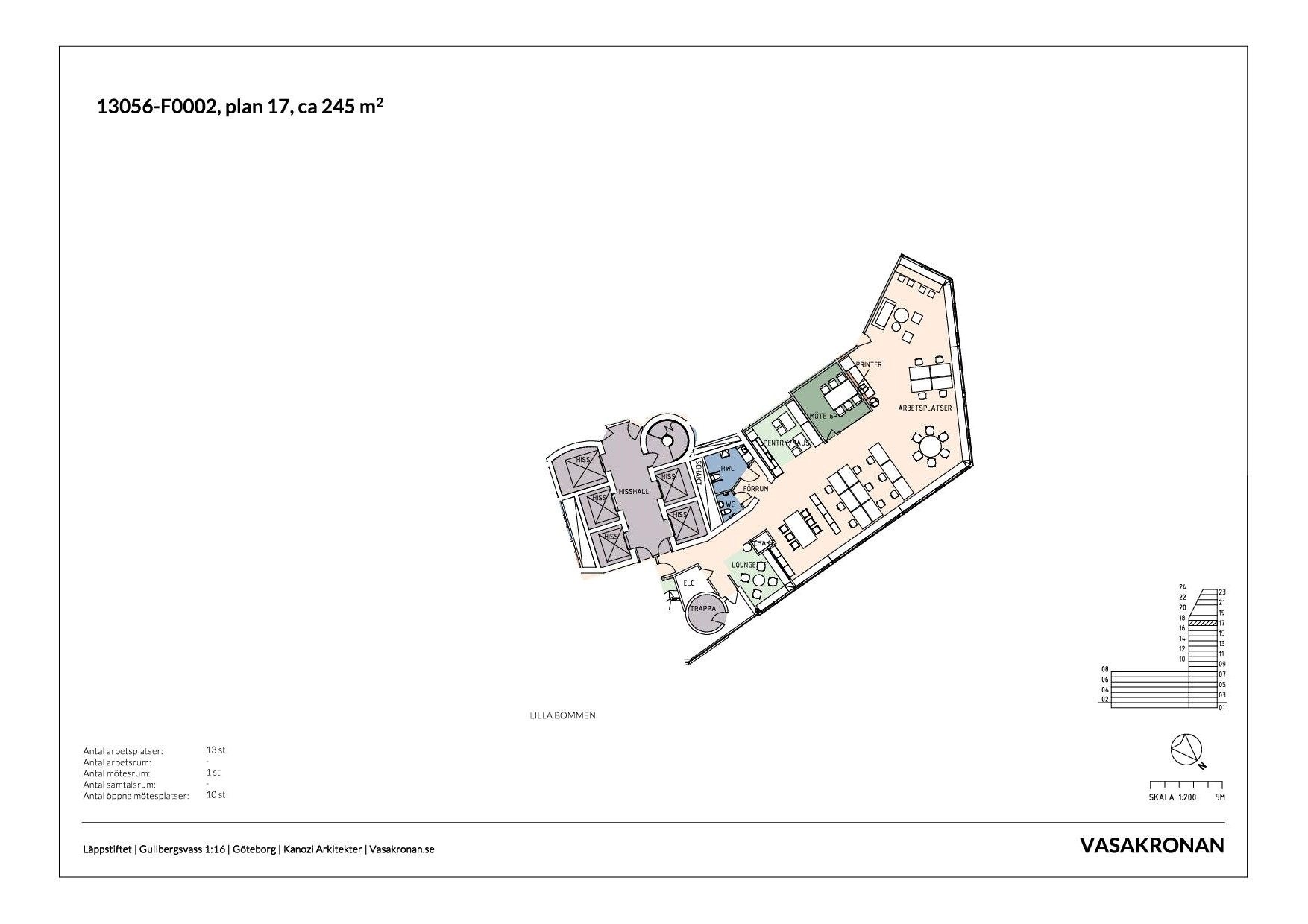 Här finns en helt nyrenoverad lokal för 13 personer på våning 15 i landmärket Läppstiftet. Fantastisk utsikt över Göteborgs stad och Hisingen. Precis i entrén finns en lounge. Lokalen är öppen med fantastiskt ljusinsläpp och fin utsikt. Lokalen är inredd för 13 stadigvarande arbetsplatser samt mötesplatser och mötesrum.