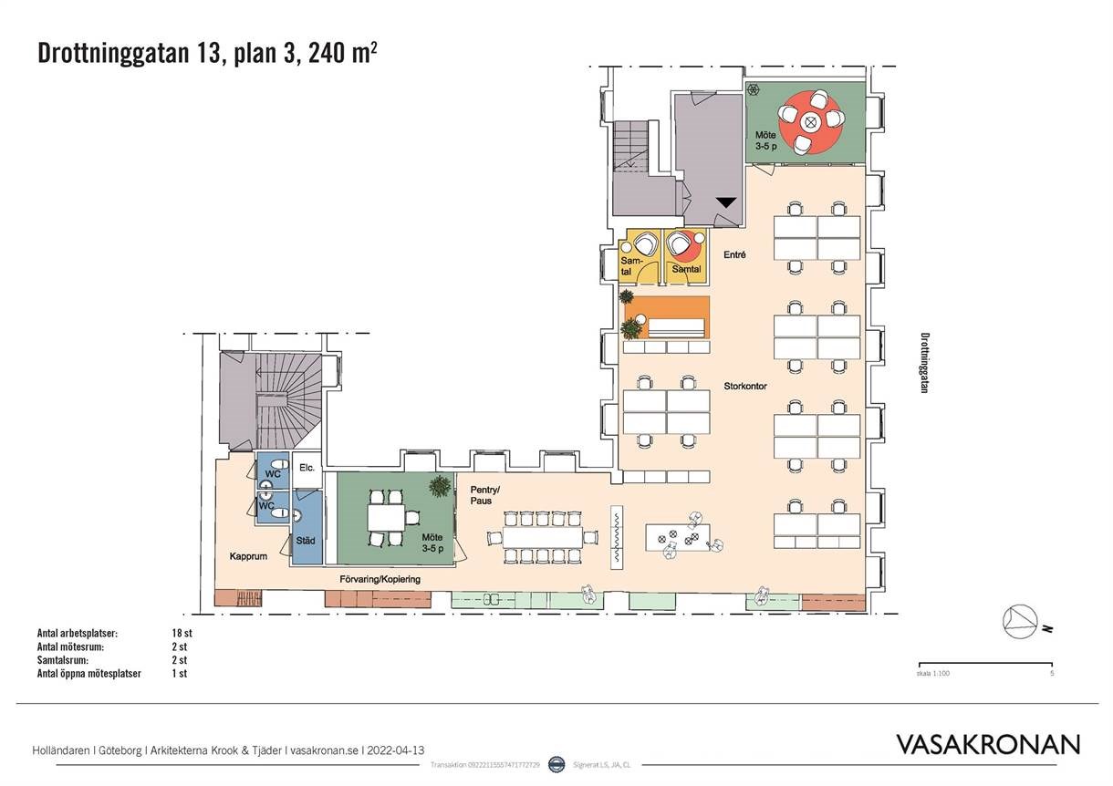 Mot en härlig, gemytlig innergård ligger denna lokal med plats för upp till 18 arbetsplatser. Lokalen är renoverad med fina ytskikt, energismarta armaturer/vitvaror och en öppen planlösning. I lokalen finns det 2 st konferensrum med plats för 6-7 personer, 2 samtalsrum/teamsrum och ett öppet kontorslandskap som ger en luftig och rymlig känsla. På Drottninggatan sitter ni i ett lugnt läge samtidigt som det är i direkt närhet till allt vad Centrum har att erbjuda.