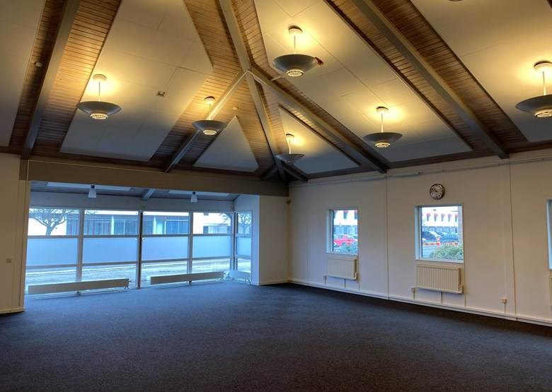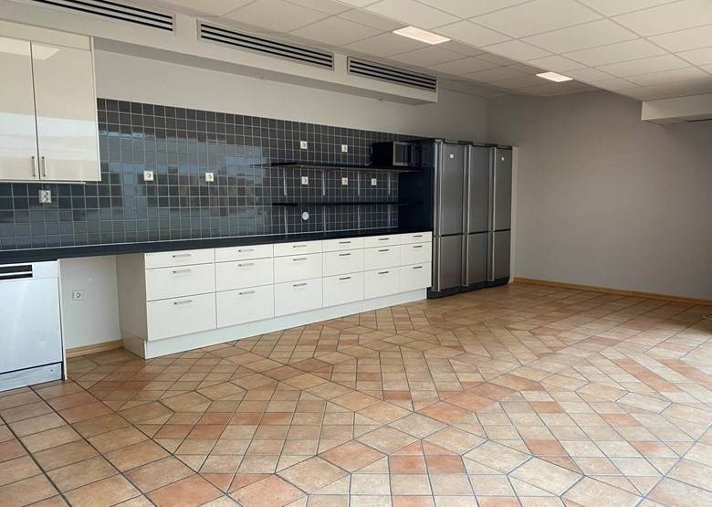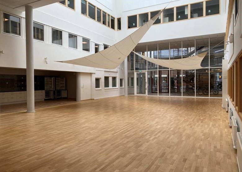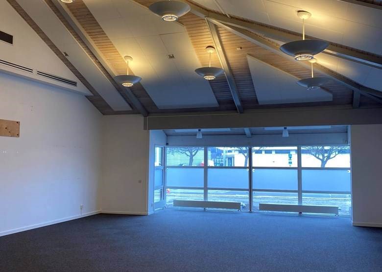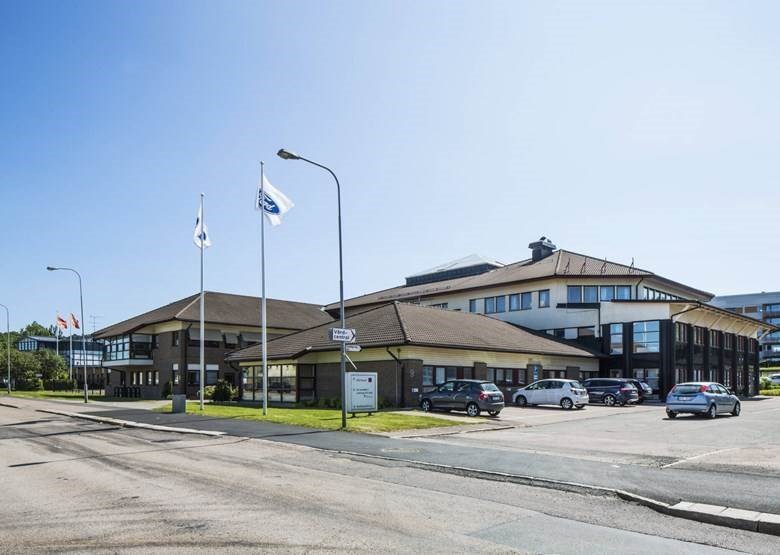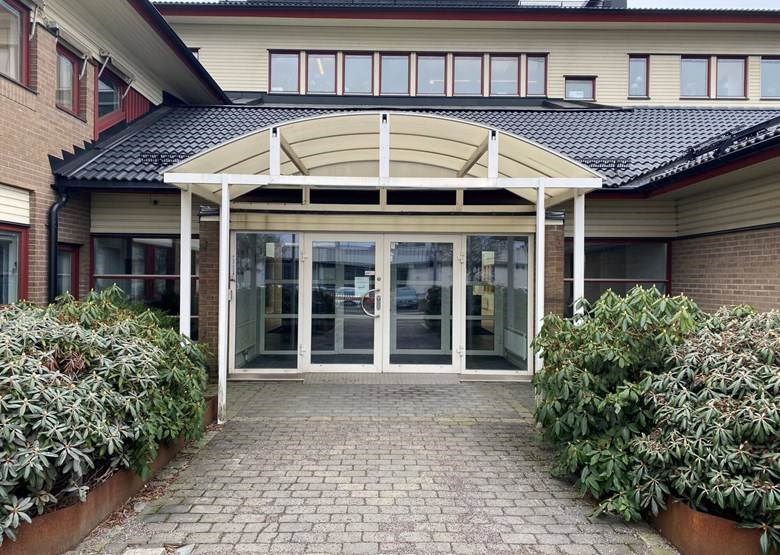Stort kontor i bra läge nära E20 med blandad planlösning. Öppen pausyta i stort atrium centralt i lokalen. Det finns fler mötesrum samt en stor utbildningssal. Parkering finns i anslutning till fastigheten