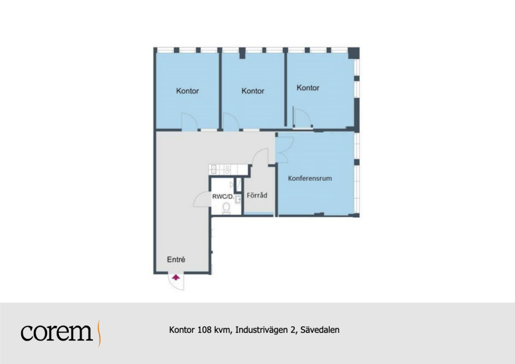 Välkommen till Industrivägen 2 i Sävedalen. Här erbjuds en ljus och renoverad lokal med tre kontorsrum och ett konferensrum. Du får tillgång till fri parkering runt fastigheten och flera laddstationer på området. Fastigheten ligger på ett bra strategiskt läge med gångavstånd till lunchrestauranger och närhet till motorleder, som snabbt tar dig in till Göteborg.